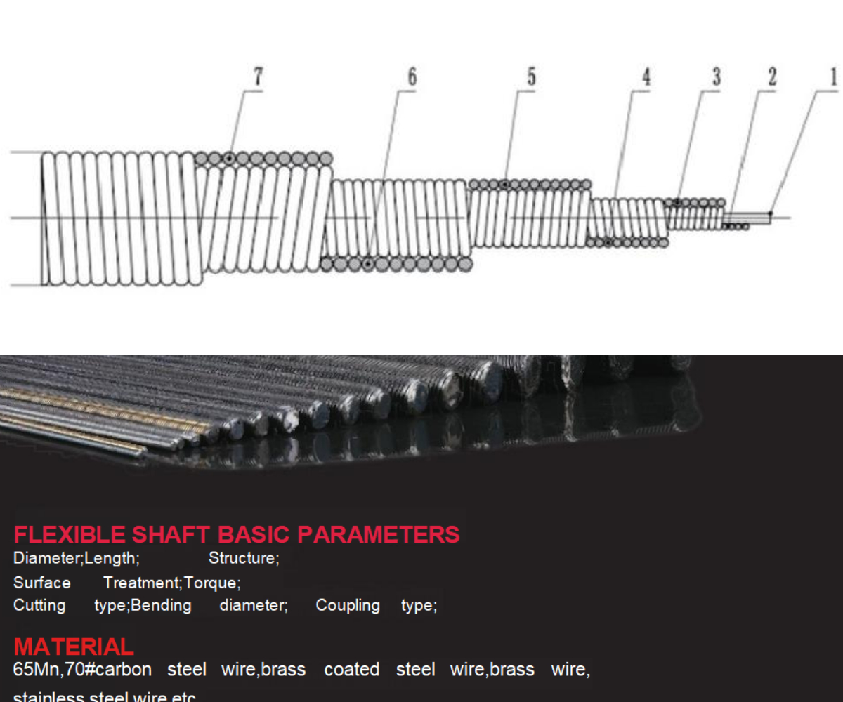 Flexible shaft | Material | Tolerance(mm) | Bending Diameter (mm) | Layer | Max Failure Torque | Weight |