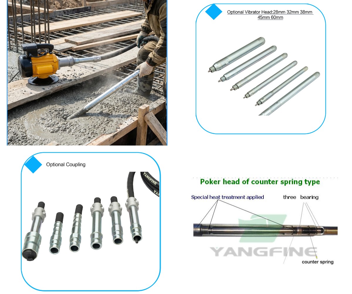 Built with high-strength alloy components and reinforced steel housing, the concrete vibrator poker is designed for long service life under continuous operation. Excellent heat resistance, wear resistance, and low maintenance requirements make it a cost-effective choice for contractors seeking reliable performance and durability.
